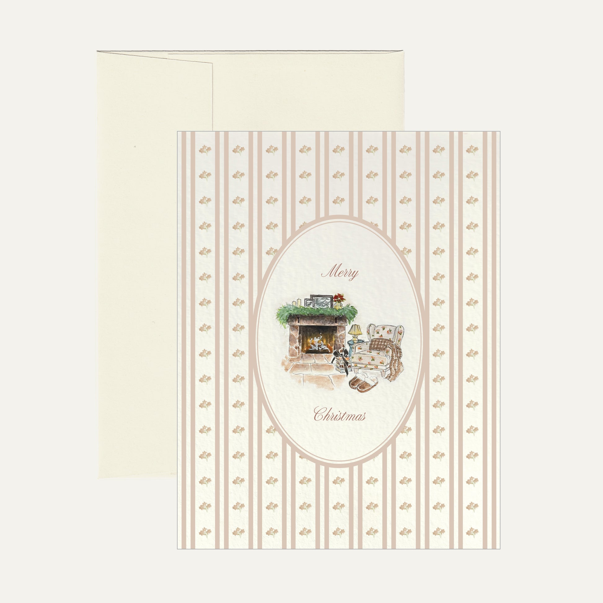 Holiday Greeting Card - Floral Print/Fireplace